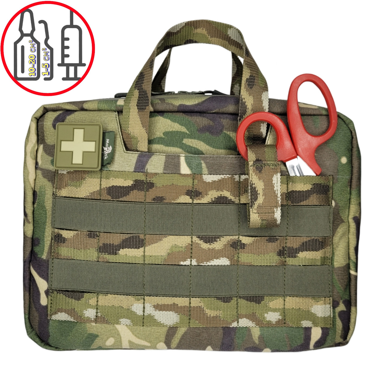 Для захисту вмісту сумки, тендітного скла ампул💉 від пошкоджень при транспортуванні в тактичних рюкзаках, аптечках і т.д. - у стінках сумки демпферна вставка, яка пом'якшує, та захищає вміст.