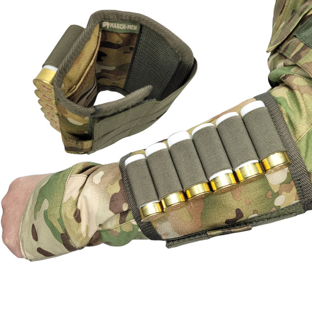За потреби патронташ можно вчипити на руку, для швидкої перезарядки, дозарядки зброї при виконанні практичних стрільб, тренувань або полювання. На руці патронташ надійно утримується завдяки потужному велкро.